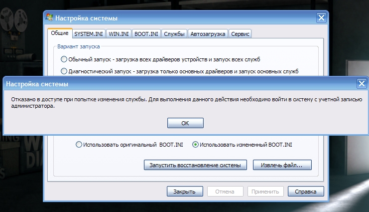 Здравствуйте. Возникла проблема при запуске msconfig и изменении какого либо параметра возникает сообщение «Отказано в доступе при попытке изменения службы» требуются права Администратора при этом изменения можно внести нажав применить и OK в чем проблема? Сталкиваюсь с ней периодически. Подскажите что делать.