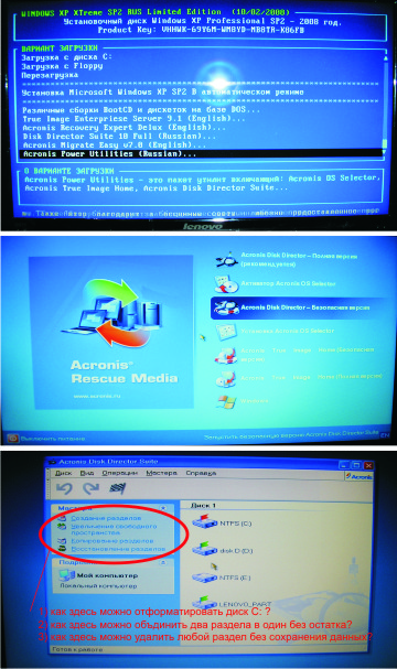 Профиль | Отправить PM | Цитировать ArtemonX, чтобы отформатировать в Acronis Disk Director. Сначала выберете мышкой раздел, над которым хотите совершить операции, и слева появится весь перечень функций. Либо можно нажать на нужном разделе правой клавишей мыши, откроется тот же список функций.