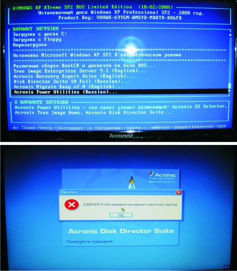 Профиль | Отправить PM | Цитировать В моей практике, все проблемы, когда acronis не видел жёстких дисков, а так же невозможности установки ХР, всегда решались переводом контроллера из режима AHCI в IDE (в BIOS).