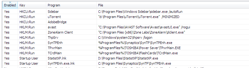 PS. Приложил список AutoRun, может понадобиться? PSS. Мне стыдно что забылся о вашем топике в блоге |
