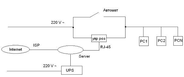интересует устройство, которое может удаленно подавать и отключать питание в офис. Бывают ли такие? Знаю, что есть управляемая розетка типа такой http://www.lan-for.ru/item.php?id=0009629 но это для одного-двух устройств. А нужно заменить два рубильника в офисе на управляемые. То есть, чтобы юзеры уходя их выключали, а когда нужно обслуживать компьютеры удаленно, чтобы можно было его включать через локальную сеть (интернет). Есть сервер с белым IP на базе FreeBSD, на компах настроен Wake On Lan. |