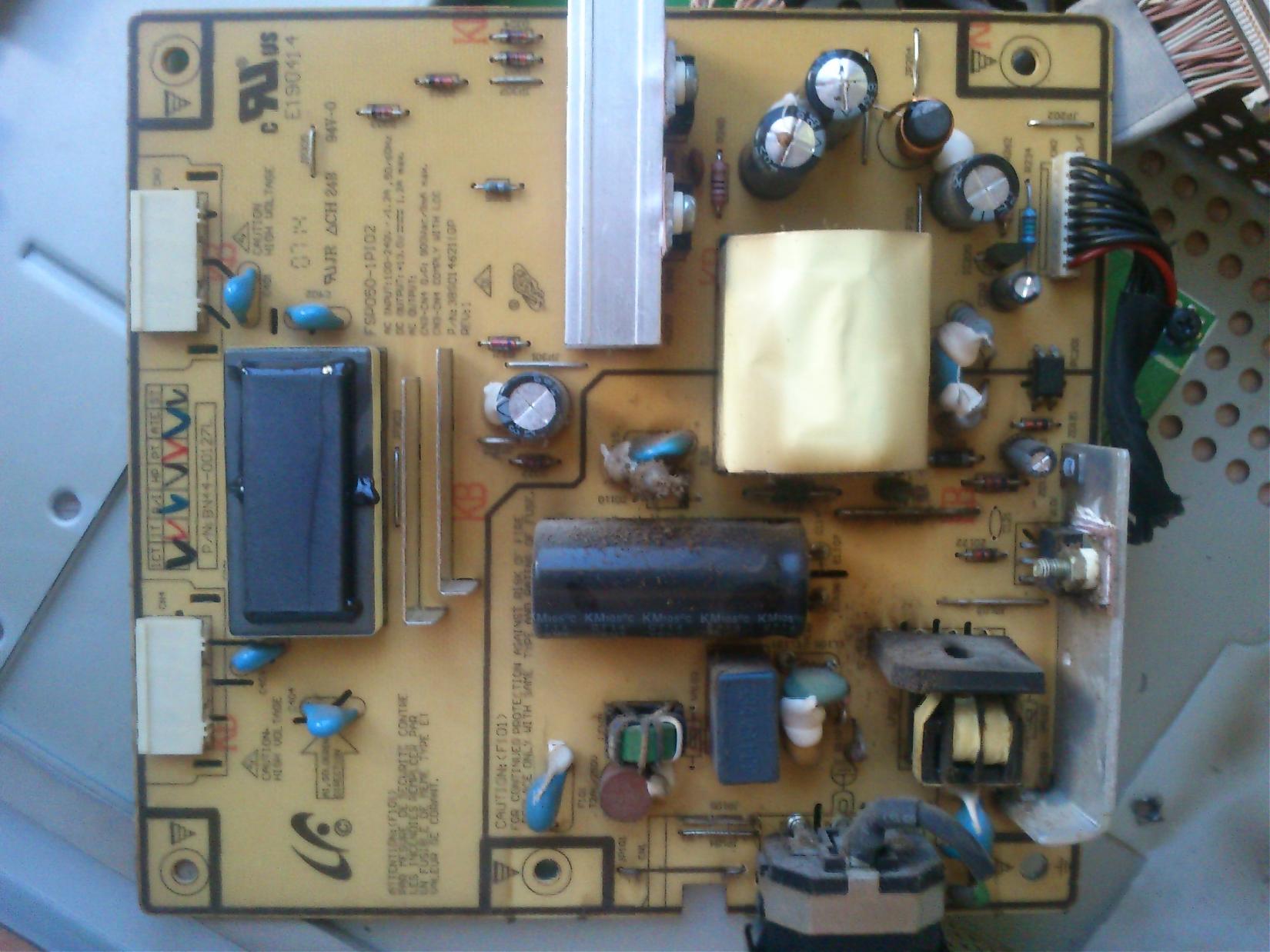 Профиль | Отправить PM | Цитировать Вздутые конденсаторы и меняйте в первую очередь. А коричневое поле может всего лишь клеем оказаться - при сборке платы крупные детали частенько приклеивают.