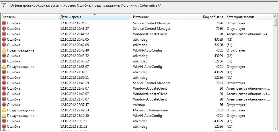 Второе, третье и четвертое пока не трогал. Обнаружил еще одну ошибку, которая повторяется часто: "Сбой при загрузке драйвера(ов) перезагрузки или запуска системы: cdrom". При том, что у мене его (cdrom) просто нет. Вложил текстовую версию журнала за 12 часов (ошибки и предупреждения). Спасибо. |