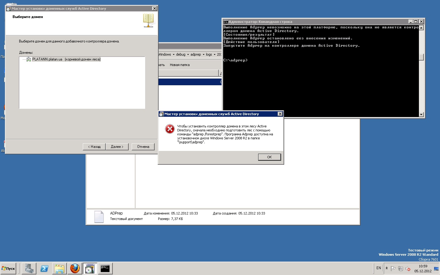 Ошибка следующая. C:\adprep>adprep.exe /forestprep Предупреждение ADPREP. Перед запуском Adprep все контроллеры доменов Active Directory леса, работающие под управлением Windows 2000, должны быть обновлены до версии Windows 2000 с пак етом обновления 4 (SP4) или более поздней. [Действие пользователя] Если ВСЕ существующие контроллеры доменов Active Directory под управлением Windo ws 2000 отвечают этому требованию, введите C и нажмите клавишу ВВОД для продолже ния. В противном случае нажмите любую другую клавишу и клавишу ВВОД, чтобы выйти из программы. C Данные уровня леса уже обновлены. [Состояние/результат] Программа Adprep не предпринимала попыток повторить эту операцию. Что делать? |