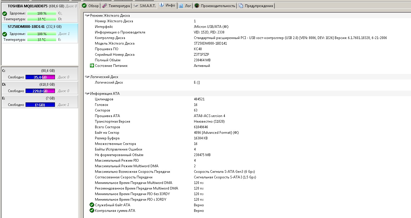Изучая интернет форумы и сайты, я перепробовал много программ по восстановлению данных. Суть проблемы: Умерла материнка, купил новую. Когда стал подключать к рабочей материнке свой старый ЖД (Seagate ST250DM000) и столкнулся с такой проблемой как RAW. (Ранее подключал к другому ПК как внешний - работал, сейчас нет) Чекдиск с /f ругается на то что RAW - дело дрянь. (ЖД подключен здесь и далее как внешний с дополнительным питанием через SATA) Подключение напрямую - тоже самое. Здесь на форуме обсуждалось какая программа лучше rs partition recovery или Runtime GetDataBack. У обоих одна и таже проблема: после долгого восстановления данных, с сохранением на другой ЖД где в 4 раза больше памяти, почему-то заполняет ЖД до отказа. Возникает вопрос. КАК ТАКОЕ ВОЗМОЖНО? Может что я делаю не так? То что сохранялось/восстановилось - не отображается, весит 0 или не открываемый файл. Удалял ещё один день то, что понакопировалось (Виндоус удалось удалить что-то), так как папка в папке превышает 260 символов. При том, что 0Гб в папке, которую всё копировалось). Жесть. Ок. Кто сталкивался с проблемой RAW помогите пожалуйста. Хочется восстановить данные, на восстановление ЖД с полностью работающей Осью уже не рассчитываю. Спасибо. PS: SMART, инфо прилагаю. Поверхностный тест диска до восстановлений был идеальным, так же как и работа головок. Тестирую ещё раз. |