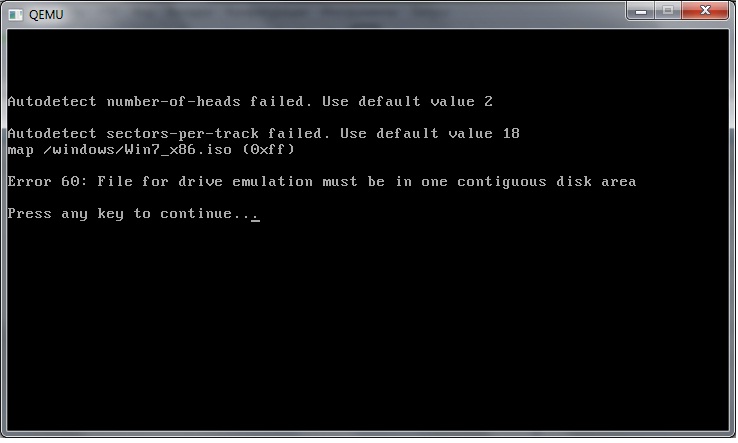 Autodetect number-of-heads failed. Use default value 2 Autodetect sectors-per-track failed. Use default value 18 Erroe:60 и т.д. Спасибо. |