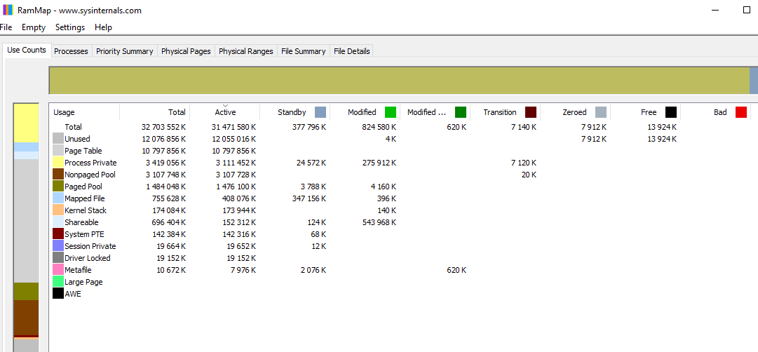 1. При появлении проблемы запустите RAMMap и сделайте скриншот вкладки Use Counts. 2. Если вы видите высокoe значениe NonPaged Pool: