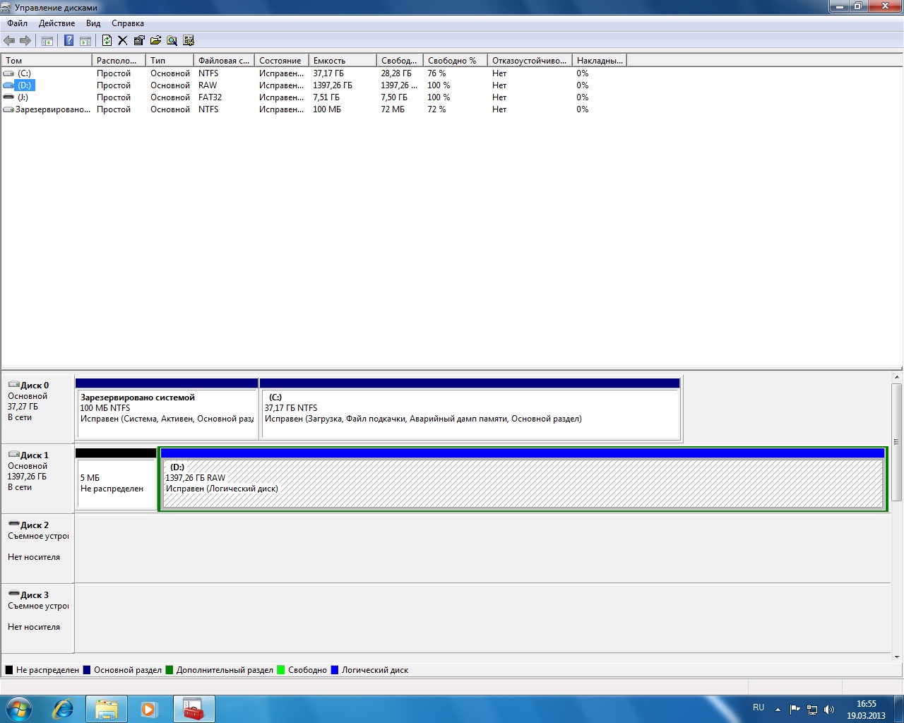 См. пост Antech Отправлено: 13:08 06-04-2009 Восстановление таблицы разделов (не данных) http://gallery.ru-board.com/topic.cg...509&start=1600 Что делать...???... Запустите полный поиск NTFS разделов на ВСЮ поляну. Результаты поиска можно сохранять в контрольной точке и загружать, чтобы продолжить поиск в удобное время. Попробуйте затем в DMDE восстановить отдельные файлы на другой носитель. Знаю, что у Вас его нет, но придётся раздобыть... Добавлено ======= В DMDE сделайте MBR OFF это для того, чтобы ВЫы и Winduws не видели раздела/тома и не писали поверх информации, которая там осталась, но может перекрываться... Цитата Aristokrat: