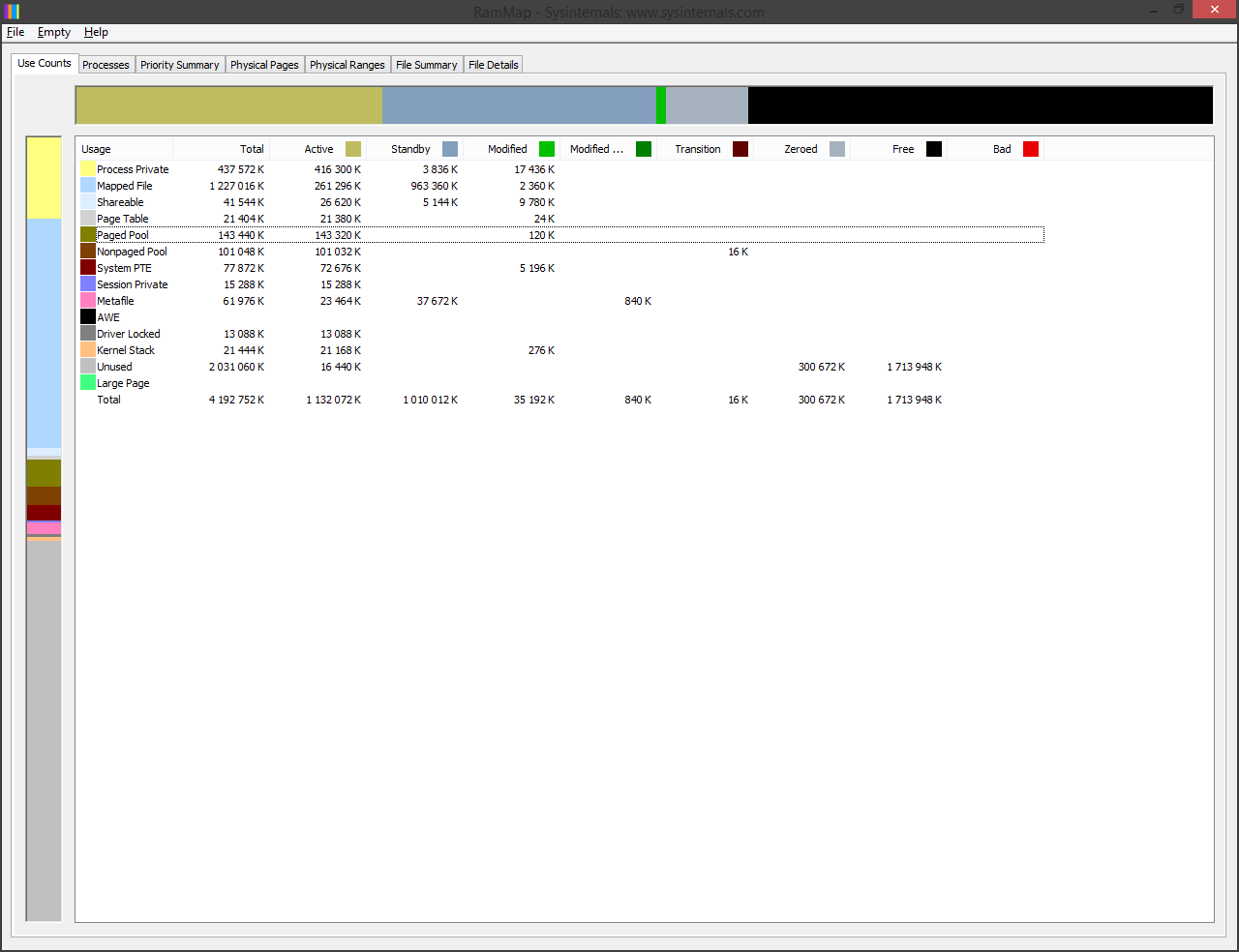 1. Запустите RAMMap и покажите скриншот вкладки Use Counts во время глюка. 2. Если утечка в Nonpaged Pool или Paged Pool - причина в каком-то из драйверов. Чтобы его определить: