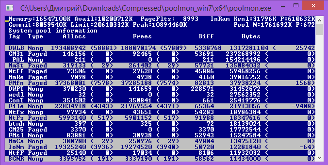 Профиль | Отправить PM | Цитировать Naararouter, да, утечка Nonpaged Pool в теге DWLB - относится к Dr.Web.