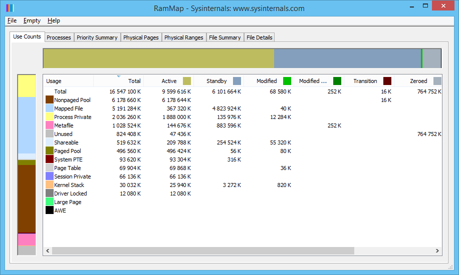 1. Запустите RAMMap и покажите скриншот вкладки Use Counts во время глюка. 2. Если утечка в Nonpaged Pool или Paged Pool - причина в каком-то из драйверов. Чтобы его определить: