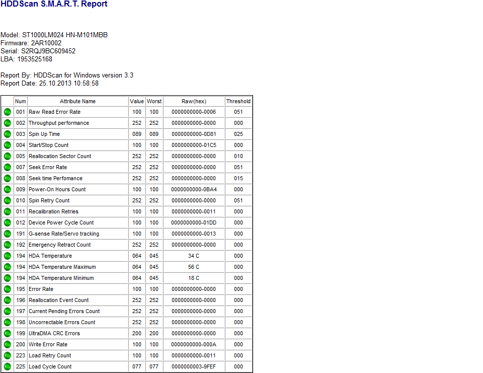 Приведите СМАРТ винта, если он виден Диспетчером Устройств, из утилиты HDDScan 3.3. »