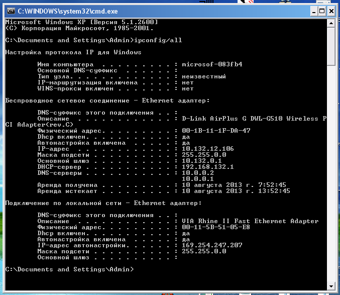 IP-адрес автонастройки. . . . . . : 169.254.247.207