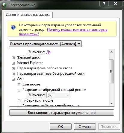 Я на ПК один пользователь "администратор", но настройки элекропитания мне не все доступны. На пример не могу включить гибернациию. В настойках плана элекропитания не могу отключить гибридный слящий режим, тем самим разблокировать гибернациию. Только можно присвоить кнопке питания переводить ПК в гибернациию. Но это не совсем удобно... Посоветуйте как бить?