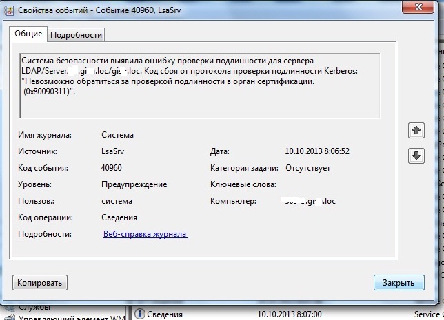 В логах целый ряд ошибок, из-за которых после ввода пароля "Пожалуйста подождите" и так висит долго или пока не вытащишь сетевой кабель. Клиент - w7 x32. КД - 2008 r2. Проблема данная на нескольких компьютерах. Куда копать для ее решения? |