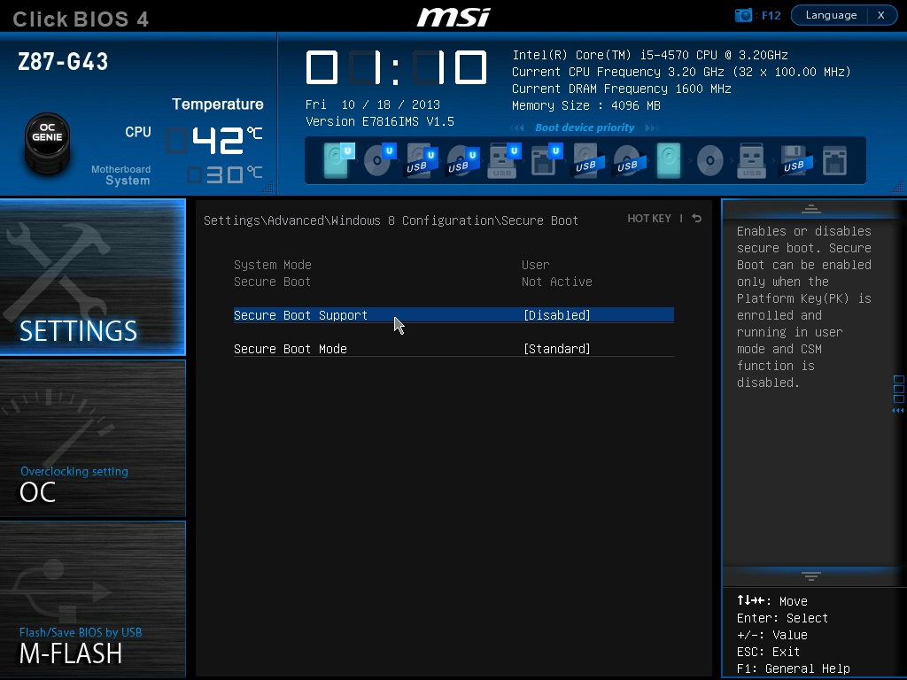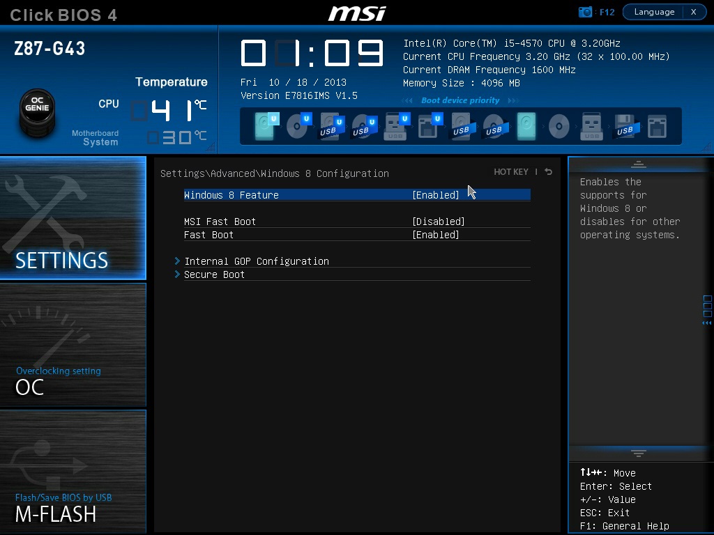 у меня тоже MSI с таким же БИОС. Пару минут назад перенес 8.1 на UEFI. После загрузки появилась надпись о том, что "Secure Boot isn't configured correctly". Надпись ушла после установки ключей в соответствующем разделе Биос. |