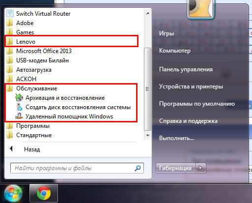 В пуске у меня есть две ненужные папки которые только место занимают "Обслуживание" и "Lenovo". Пытался их удалить стандартно ПКМ->Удалить но после перезагрузки компьютера они снова появляются.