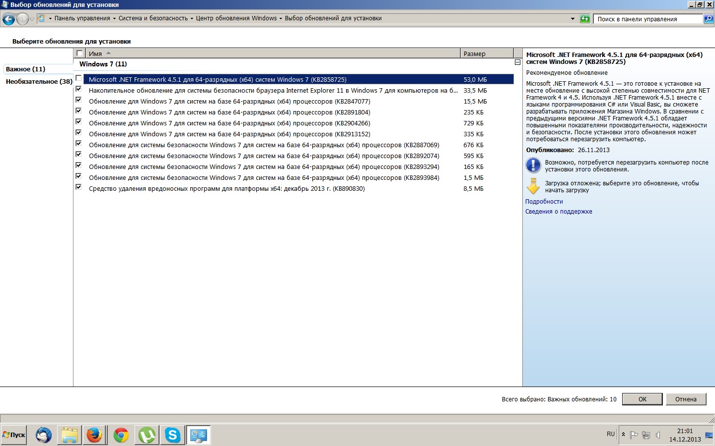 Профиль | Отправить PM | Цитировать Да нет, по идее Центр обновления Windows не ставит обновления конкретно для Firefox. Не знаю, попробуйте по одному ставить и проверять работоспособность браузера.