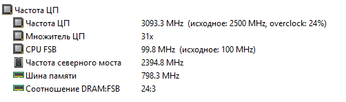 Профиль | Отправить PM | Цитировать ruslan..., суть в том, что частота процессора "плавает", меняясь все время — от 3092 MHz (разгон 24%, выше пока не видел) до 1800 MHz и даже ниже. Есть подозрение, что это-то и есть причина проблемы.
