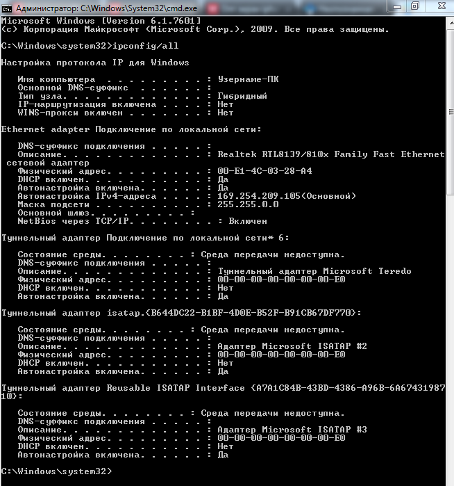 Профиль | Отправить PM | Цитировать TheRegulator, выставьте получение адресов автоматическое, и покажите ipconfig /all