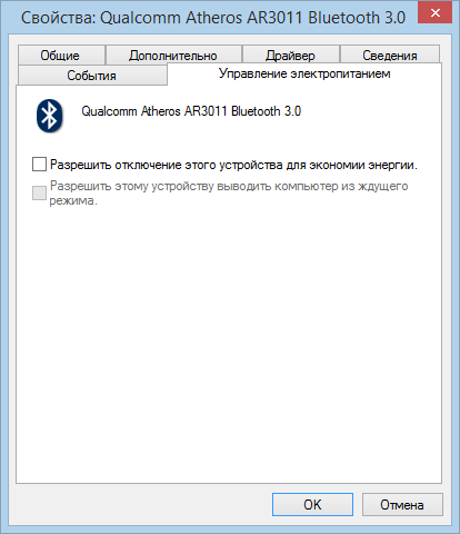 Снял галочку в управление электропитанием -"разрешить отключать устр-во для экономии энергии" http://forum.oszone.net/attachment.p...1&d=1422362641 В приложении Службы Windows, службам связанным с Bluetooth выставил тип запуска автоматически. http://forum.oszone.net/attachment.p...1&d=1422362738 http://forum.oszone.net/attachment.p...1&d=1422362738 Но проблему это не решило, Bluetooth отключен при включении ноутбука. Запускается только после включения его вручную при помощи комбинации клавиш Fn+F2. После запуска работает без проблем, пока не выключишь ноутбук. |