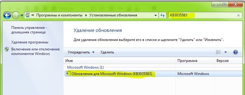 wusa.exe /uninstall /kb:3035583 Кроме того, групповые политики AD никто не отменял. |