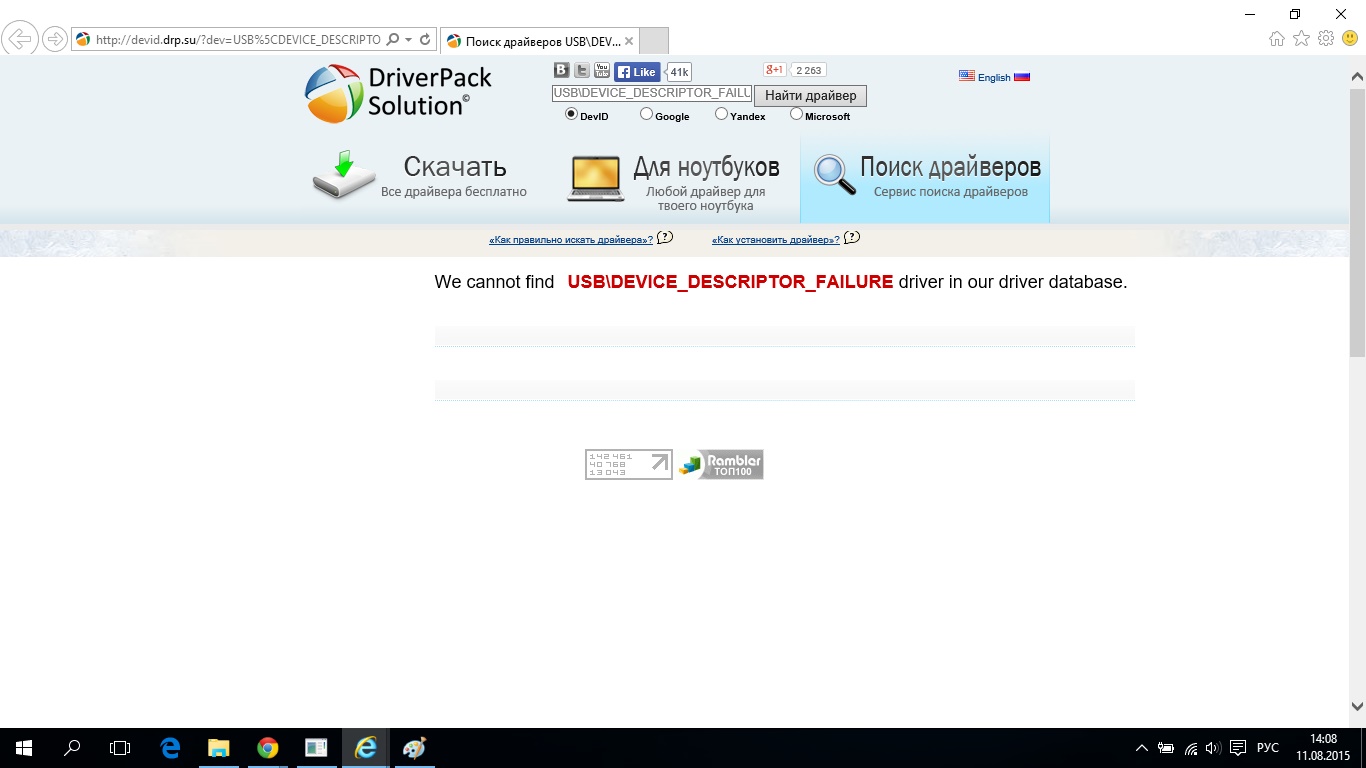 Здравствуйте , после установки windows 10 , у меня перестала работать мышка , ну там втыкаешь , горит свет и потом опять выключается , и выдает вот такое сообщение - "USB- устройство не опознано ".Ну естественно я решил покопаться в "диспетчер устройств" , там пишет "сбой запроса дескриптора устройства " , потом я решил поискать в DPS - драйвера , там было написано USB\DEVICE_DESCRIPTOR_FAILURE - требует установки , конечно я обрадовался , но этого драйвера там - нет.