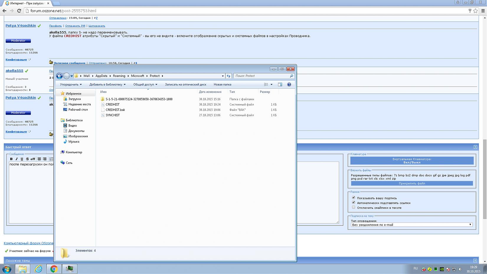 Профиль | Сайт | Отправить PM | Цитировать Краткий перевод: по пути C:\Users\ХХХ\Appdata\Roaming\Microsoft\Protect\ удалить дважды скрытую папку.