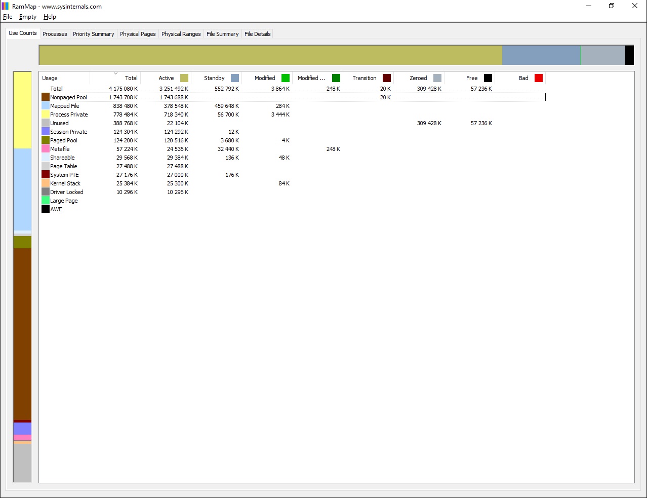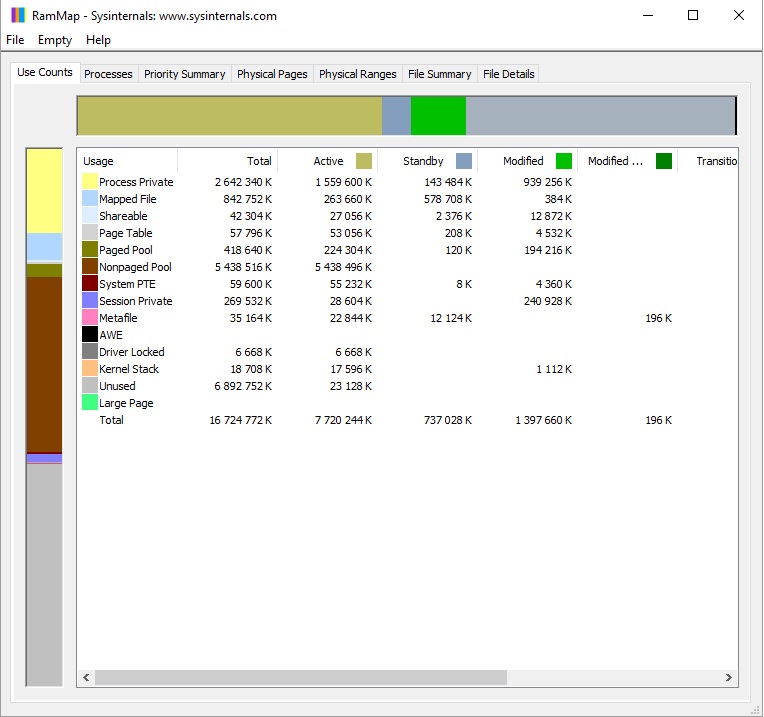 у меня уже какое-то время происходит утечка оперативной памяти (вплоть до 97%) прикрепил скриншот из RamMap'а Заранее Спасибо за помощь |