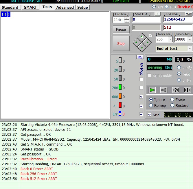 Доброго времени суток. Есть SSD Crucial M4 с очень важной информацией. Системой определяется, но инициализируется. Смарт тест и пример сканирования виктории прилагаю. Очень буду благодарен любым советам. Главное скопировать информацию.