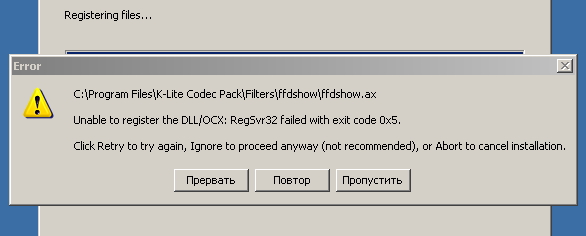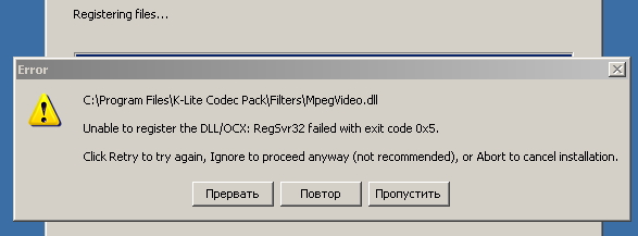 Доброго дня! ОС - Windows XP (x32), с недавнего времени перестали воспроизводиться видео- и аудиофайлы всех форматов. Переустановка кодеков (K-Lite), установка других плееров, оптимизация системы, проверка на вирусы - ничего не изменили. Скрины ошибок при установке пакета кодеков и воспроизведения файлов через MPC прилагаю. Может кто встречался с такой проблемой