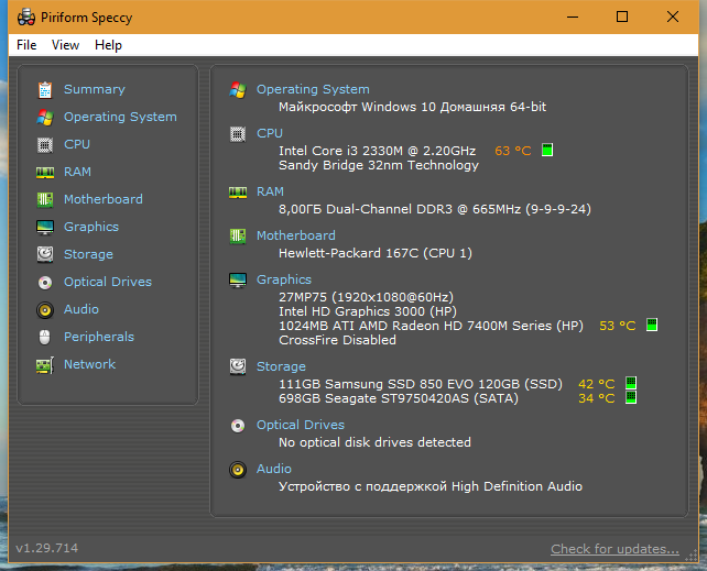 Кроме процессора, который маленько нагрелся, температура других компонентов осталось прежней. |