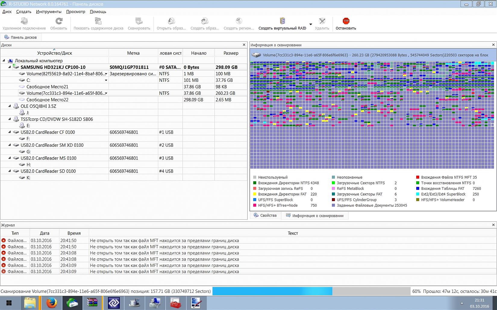 Всем привет. Решил переразметить С диск, и сделать его чуток больше через acronis. решил вырезать кусок свободного места с Д диска, на начальном процессе программа по некоторым причинам была вырублена. В итоге 279gb раздел поврежден. 2 скрина с DMDE И R-STUDIO. Можно ли вернуть все в исходное состояние, или прийдется восстанавливать все нужные файлы? в dmde показывает в рут всю структуру папок жесткого диска до переразметки.