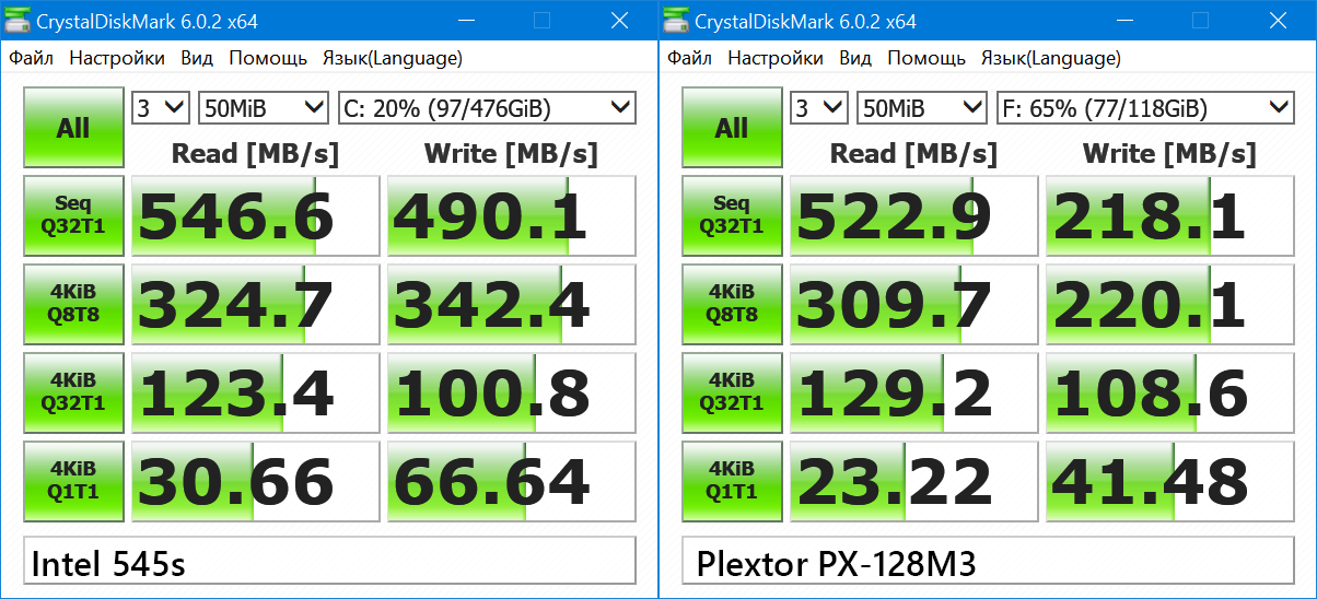 SSD - Результаты теста в CrystalDiskMark 6 SSD Intel s545