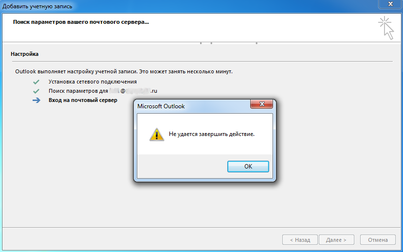 V. 2013 - "Не удается завершить действие" в Outlook при первичной настройке
