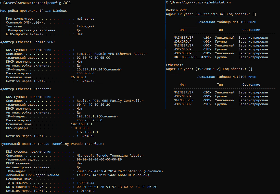 Покажите вывод: nbtstat -n Попробуйте зайти по IP-адресу: \\IP-адрес_клиента P.S. Кстати, адреса DNS-серверов в настройках поменяйте местами, чтобы первым был локальный (а не 8.8.8.8, как сейчас). |