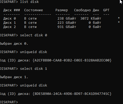 На GPT-дисках ID будет более длинным, чем на MBR, не пугайтесь, это нормально. И да, одновременное использование дисков с двумя одинаковыми ID не допускается, поэтому если ID совпадет, то просто отключите старый SSD и тогда система должна загрузиться с нового. |
