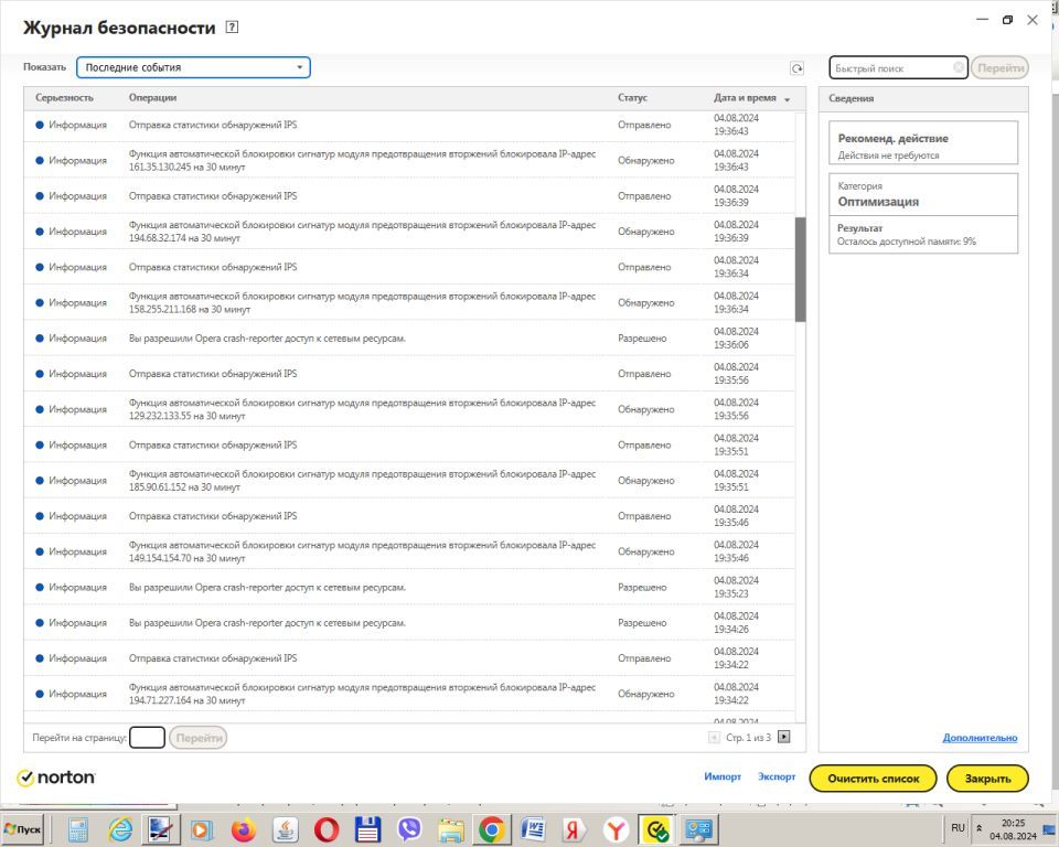 Здравствуйте. Случилось вот что - при попытке запустить Оперу, ее заблокировал Нортон. Не дает с ней ничего делать - закрывает сразу же при любых попытках открыть историю, настройки и т.д., закрашились и закрылись разом все вкладки. В журнале событий НИС - сообщение о блокировке с различных адресов и о нехватке памяти. Другие браузеры запускаются, но компьютер подтормаживает, и в его журнале тоже полно ошибок. Ранее уже замечал, что при открытии вкладки с Вайлдберриз в опере антивир блокировал запросы, но до краша не доходило. Сейчас же всё печально. Прошу помощи. Спасибо