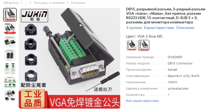 Народ подскажите пожалуйста распиновку VGA кабеля. Сразу скажу - три дня искал в интернете и нашел стандарты, картинки, схемы и прочее но толку ноль. Имеется кабель от монитора к ПК. Со стороны ПК вилку VGA на кабеле повредили/погнули/порвали. Куплено на замену этой вилке на алиэкспрессе разборное соединение d-sub 15 pin на винтовых зажимах. Вроде как стандартная история: закручивай под винтики цветные проводки. Но тут оказалась засада! Цветовая кодировка в этом сером кабеле проектора отличается от стандарта! Провода такие: R G B (сигнал + земля для каждого цвета и это вроде как стандартно) НО другие одножильные тонкие: красный зеленый белый черный - это хз куда. Разобрав старую вилку вроде как нащупал для них номера пинов но могу ошибаться красный(15) зеленый(13) белый(14). Они втроем идут в один ряд похоже. Черный не понятно куда. ПК видит устройство, но видео сигнала нет. И общее заземление кабеля нужно ли? В него завернуто всё. Имеет ли оно значение? Кто имел дела с таким серым кабелем? Подскажите плиз! |