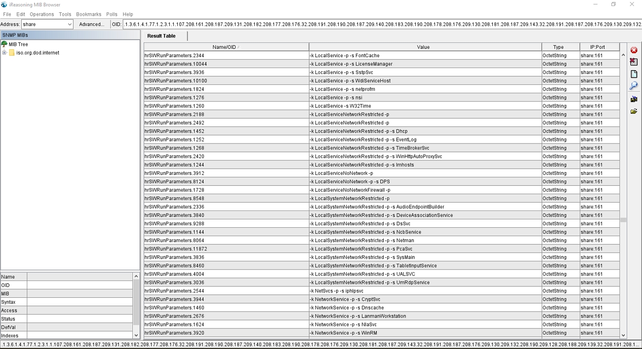 ну вот активировал я штатную snmp службу, получил через snmpwalk такую простыню... ну и как мне вычислить нужные OIDы, если при каждом запуске сервера они будут разными?