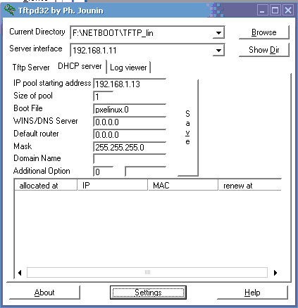 А в tftpd32.exe в качестве загрузчика точно syslinux.0 указан? Ты видимо по второй статье пошел, дык я эту конфигу воссоздавал, он стопудово рабочая.... |