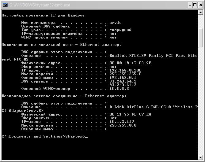 Профиль | Отправить PM | Цитировать Ну 192.168.0.100, и что? Шлюз (читай-роутер) в той же сети и имеет адрес 192.168.0.1. Для второй карты прописана та маска, которая во второй сети. Какую админ дал, ту и прописал. Провода не перепутаны. Ipconfig прилагается.