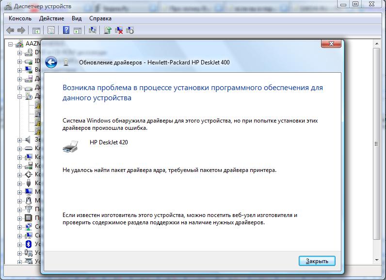 )Под ХР работает без проблем на ХРишных драйверах. В висте вставать отказывается - даю принудительно искать дрова в папке /Windows/System32, находит, но при установке драйвера выдает ошибку (см аттач) На сайте хьюлет паккард драйверов для виндов больше 98 и МЕ не делали, выдергивал ХРишные - такой же глюк выдает. Акронисом восстанавливаю ХР - принтер работает, откатываю назад Висту - и усё. Что делать, не подскажете? А то держать образ ХР и тратить по пол-часа на бэкап-рестор осей для распечатки пары листов - сами понимаете. Да, попытка установить принтер через центр обновлений Висты не увенчалась успехом - там в списке производителей принтеров вовсе отсутствует HP, есть Brother, Dell, Canon, Epson, Lexmark и Samsung ![]() |