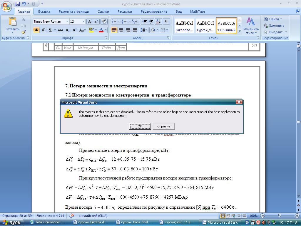 Профиль | Отправить PM | Цитировать ВиталяТ, табличка говорит о том, что макросы в вашем файле отключены в целях безопасности. Если вы не создавали в данном файле макросов, и они заведомо не нужны там, это означает, что скорее всего файл заражен одним из макровирусов, а word заблокировал его выполнение, чтобы не нанести дальнейший вред. Настоятельно рекомендую проверить все свои файлы хорошим антивирусом.