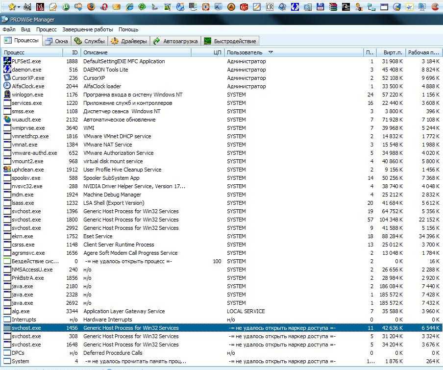 Вопросик следующий: С недавних пор начали долго грузиться некоторые системные процессы на ноуте (ХР про). Загружается рабочий стол, можно производить определенные манипуляции, такие как: запускать и играть в игры, запускать сторонние программы установленные мной после установки винды. Но при этом нельзя воспользоваться стандартными средствами: Пуск->Что-то (например, выполнить или справка), подключиться к интернету и прочее. Захожу в Process Manager и вижу: три процесса svchost.exe и процесс system не могут получить доступ к памяти. svchost'ы перезагружаю, все нормально становиться. Также если подождать минут 15-20 все подгружается самостоятельно. Ноут - Асер, 2 дуо, 3 гига памяти. Мож кто сталкивался, заранее благодарен. |