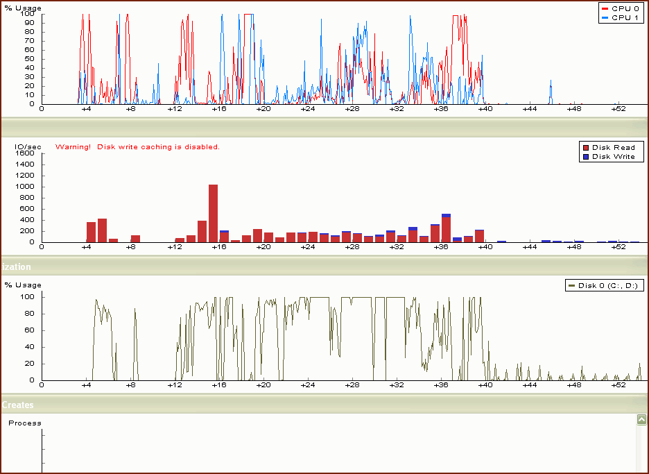 На аудит тоже отводится ресурсы, не большие но всё же. Если не критично, его лучше отключить, хотя бы на время, и посмотреть как теперь пойдут дела. По умолчанию в ХР никакого аудита не ведётся. loedrive ясно, я просто по предыдущему посту так понял что первые 2-3 раза его вызывая и ничего ему не делая на 3-4й он уже сам как положено сортирует по именам образа (процесса). Интересно так выходит, но в новом профиле на оборот сбивается на сортировку по имени, что собственно (сортировка по имени) было желаемым отображением. Вот только ещё нужно задать запоминать выбранную пользователём сортировку. Кстати по умолчанию колонка PID не отображается вовсе. После полной дефрагментации отдельная дефрагментация загрузочных файлов средствами БутВиса не требуется Для начала в MsConfig нужно отключить все не MS сервисы, смотреть как тогда поведёт себя вход в систему. Потом приводить к минимализму, опираясь на самую урезанную конфигурацыю. Службы, добавленные SP3, выключить тоже можно. Проверить скорость входа в безопасном режиме. Кстати нужно было за одно проверить как там себя БутВис на СП2 вёл. А развёртывание из образа синюю дефрагментацию небось нарушило. Но это как видно не столь важно, главное проверка диска. Как вариант проверка консольной утилитой chkdsk c параметром /r. Для проверки диска C:\ команда будет выглядит так chkdsk C: /r Скорей всего попросится проверит вовремя следующей загрузки ОС, вот тут и стоит смотреть не появляются ли сообщения про ошибки в ФС диска. |