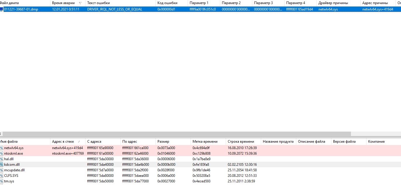 А так конечно, можно еще дампов пособирать, если драйвер сбойный, то падения будут частыми. |