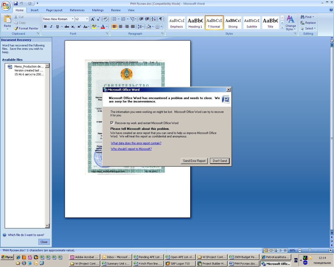 Профиль | Отправить PM | Цитировать проблемка при открытии WORD
