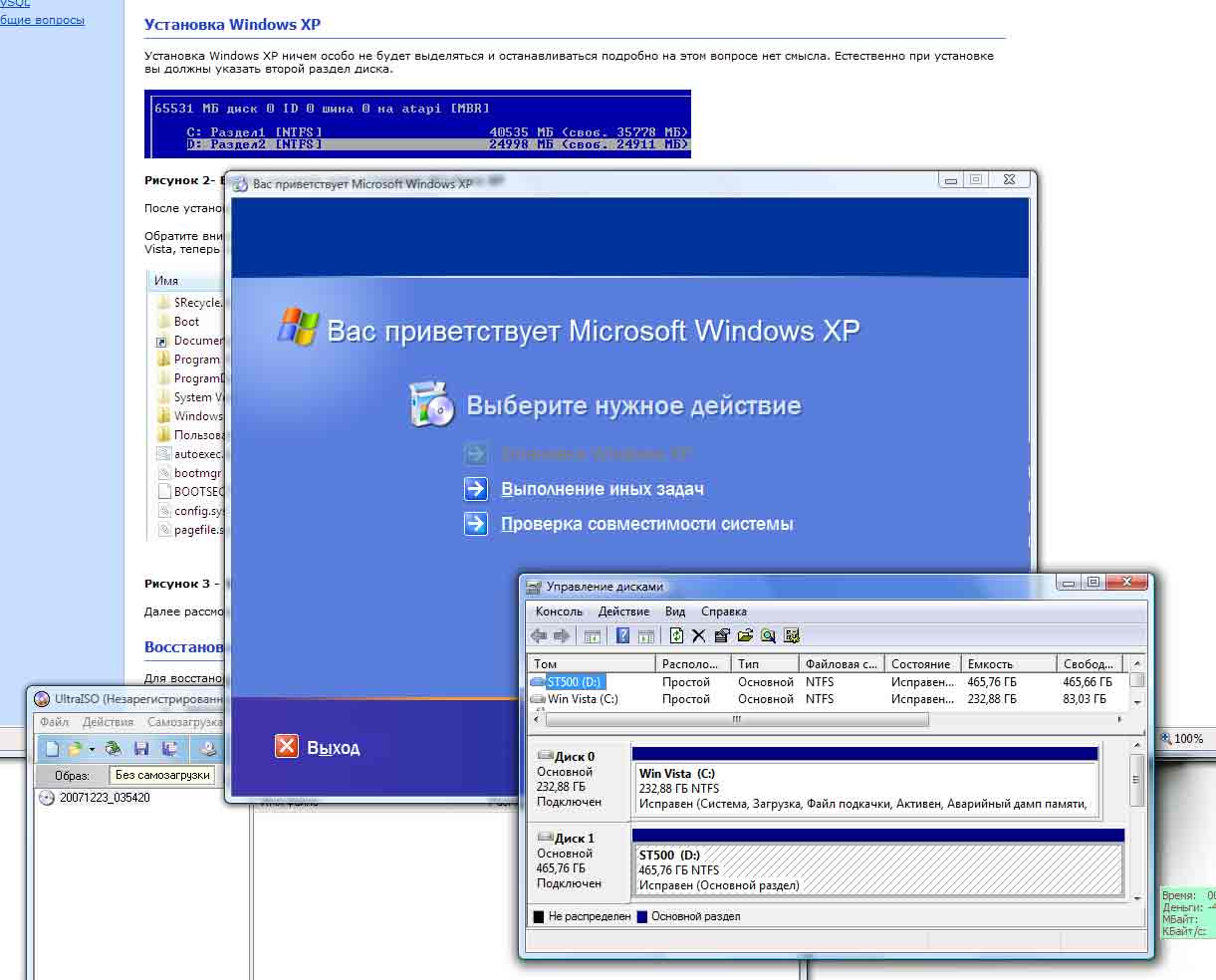 В этой статье рассказывается, как правильно выполнить установку Windows XP на компьютер, где уже установлена Windows Vista.