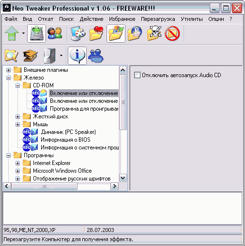 Все скриншоты, приведённые в этой статье, сделаны при работе программы Neo Tweaker Professional в операционной системе Windows XP.